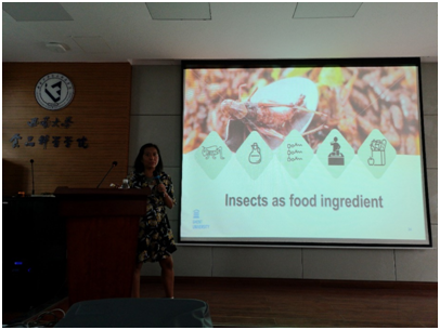 报告会伊始,Tzompa-Sosa博士介绍了昆虫作为可持续性食品原料的价值以及开发应用现状,主要针对昆虫油脂与甲壳素的功能和特点进行阐述。