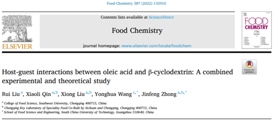 2022年4月6日,我院2019级“百超”创新实验班本科生刘瑞在Food Chemistry发表了题为“Host-guest interactions between oleic acid and β-cyclodextrin: A combined experimental and theoretical study”的研究论文。该文指导教师、通讯作者为钟金锋副教授。全文链接:https://doi.org/10.1016/j.foodchem.2022.132910