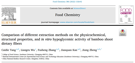 2022年3月26日,我院2019级“百超”创新实验班本科生汤彩碟作为第一作者在Food Chemistry(Q1, IF:7.514)发表题为“Comparison of different extraction methods on the physicochemical, structural properties, and in vitro hypoglycemic activity of bamboo shoot dietary fibers”的研究论文。该文指导教师、通讯作者为郑炯副教授。全文链接:https://doi.org/10.1016/j.foodchem.2022.132642