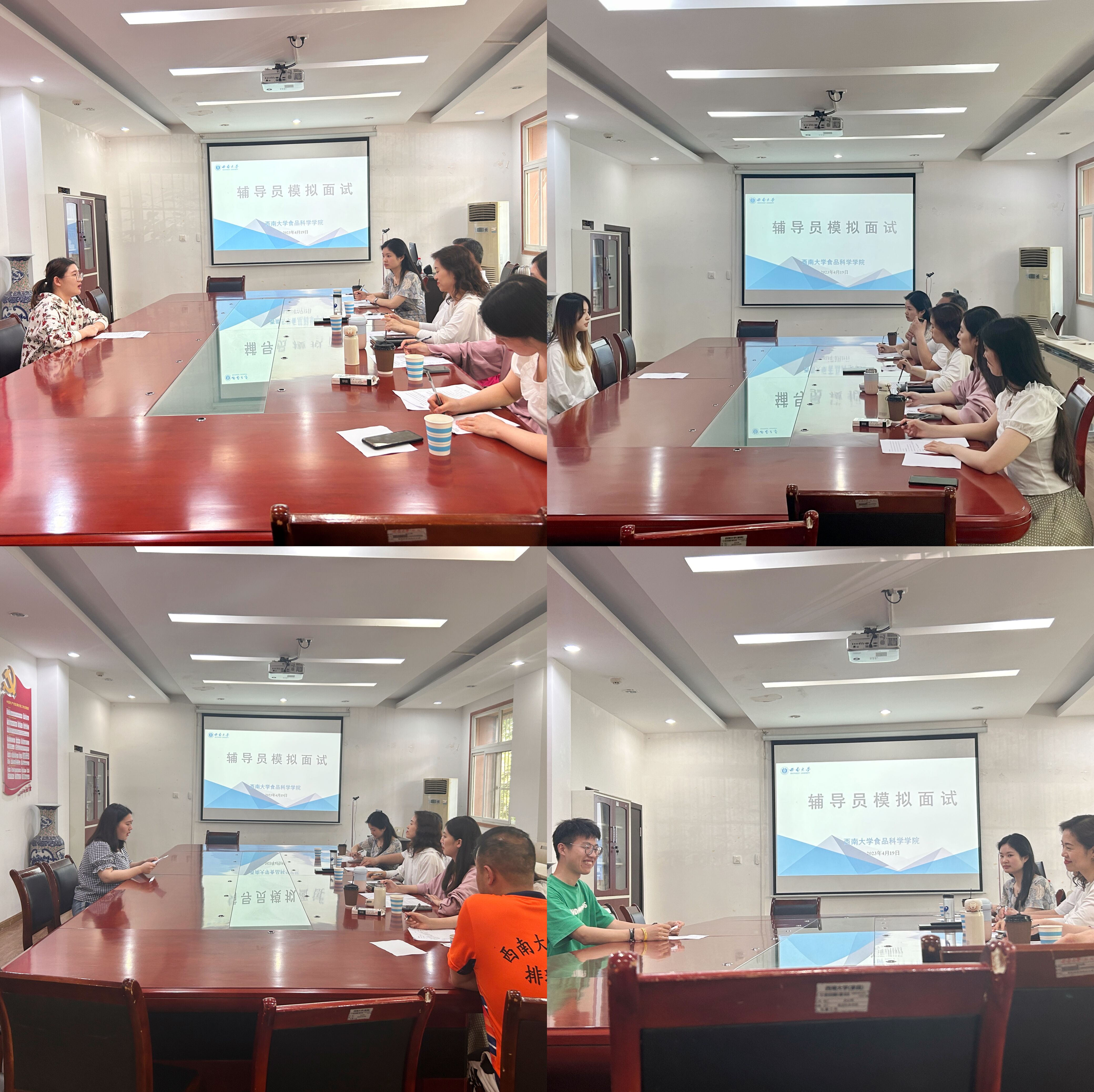 为扎实推进毕业生就业工作,帮助学生实现更加充分更高质量的就业,best365英国在线体育官网通过问卷调研和辅导员谈心谈话等形式后,对2023届毕业研究生的高校求职意向进行摸排,深入分析了毕业生的求职需要,于4月19日下午2:30在40教206会议室组织开展了辅导员模拟面试活动。学院党委书记吴俊平、副书记刘秋艳、团委书记黄晔及辅导员张欢、杨希、夏雪受邀担任此次模拟面试主考官。