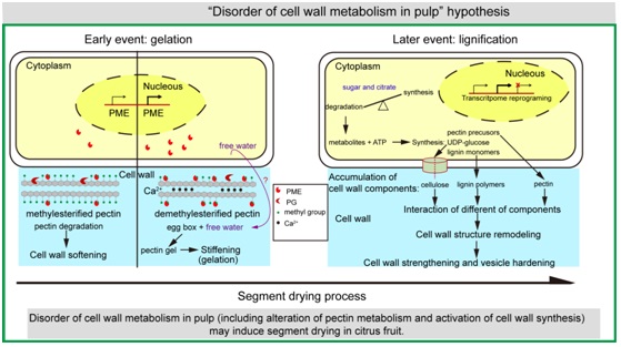 图1. 细胞壁代谢紊乱诱导柑橘枯水假说示意图