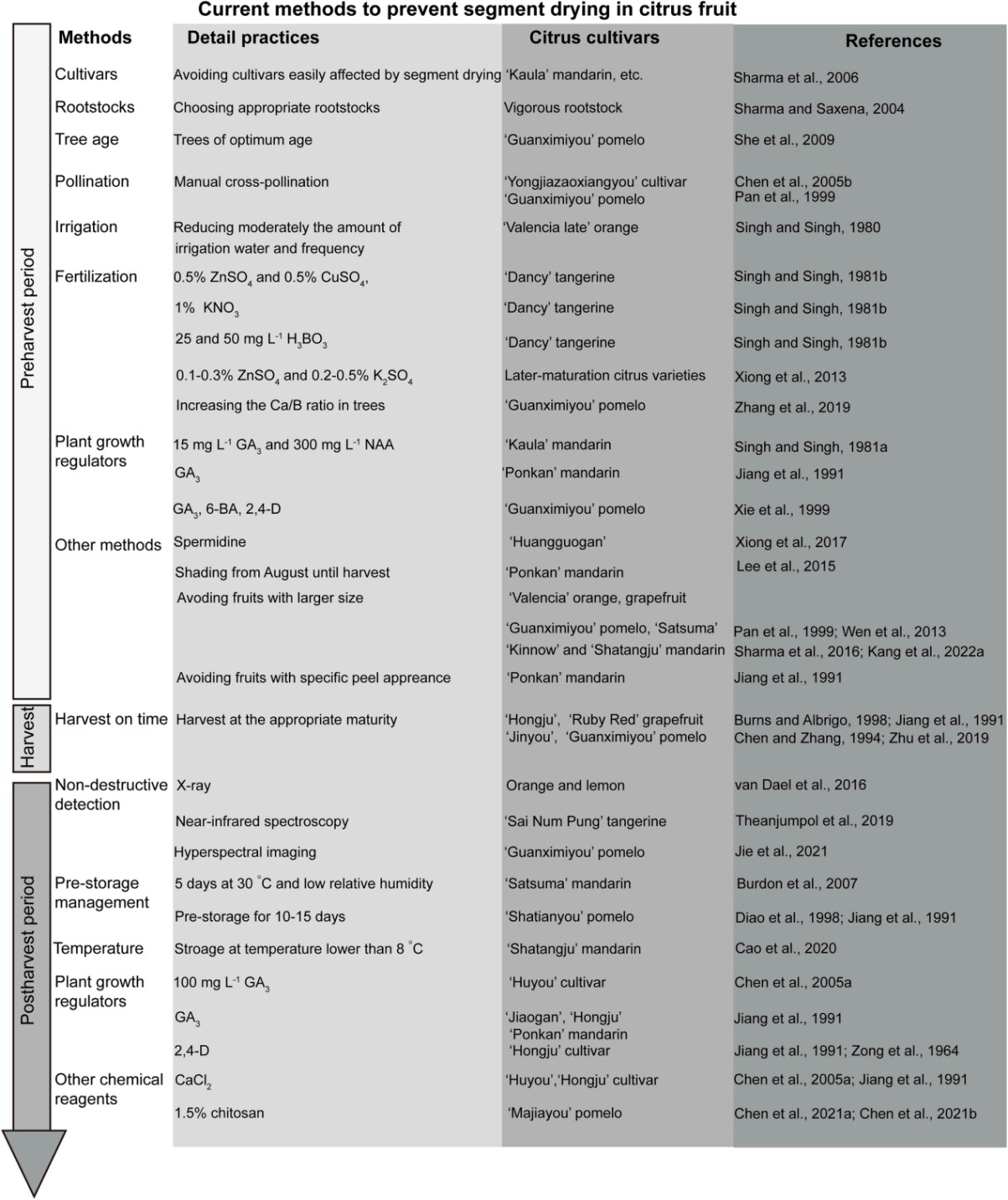 Huang, C., Hou, J., Huang, M., Hu, M., Deng, L., Zeng, K., Yao, S. 2023. A comprehensive review of segment drying (vesicle granulation and collapse) in citrus fruit: Current state and future directions. Scientia Horticulturae, 309, 111683.