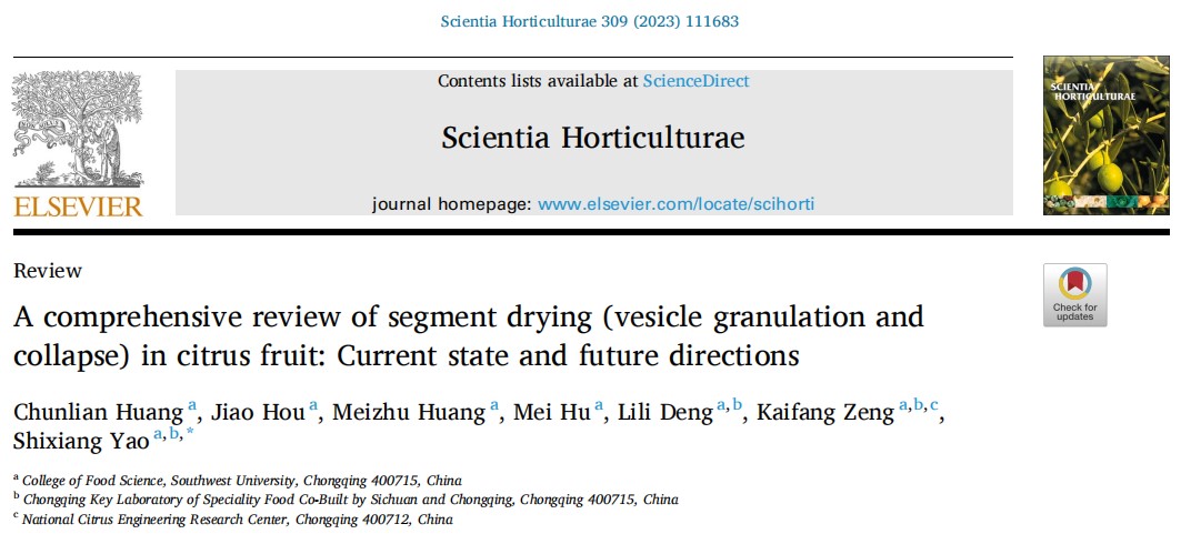 近日,Scientia Horticulturae在线发表了西南大学题为A comprehensive review of segment drying (vesicle granulation and collapse) in citrus fruit: Current state and future directions的论文。