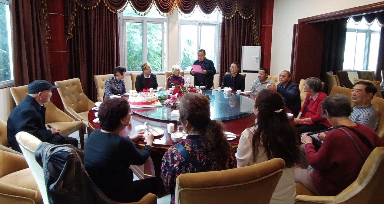 学院党委吴俊平书记牵头为退休教师陈宗道教授、蒋作明教授过八十岁生日。吴俊平书记真诚感谢老一辈创建食品学科付出的艰辛和努力,表示我们食品人将接续奋斗、再创辉煌,祝愿每一位老同志心情愉悦,身体健康,生活幸福,祝福两位老寿星健康长寿。陈宗道教授表示他们正共享改革发展成果、安享幸福晚年,希望学院发展更上一层楼。司辉清副教授给大家送上“西大印象”茶叶,祝福退休教师重阳节快乐!唱生日歌、许愿、吹生日蜡烛、品生日蛋糕,两位退休教师在浓浓的仪式下过了一个难忘的集体生日。