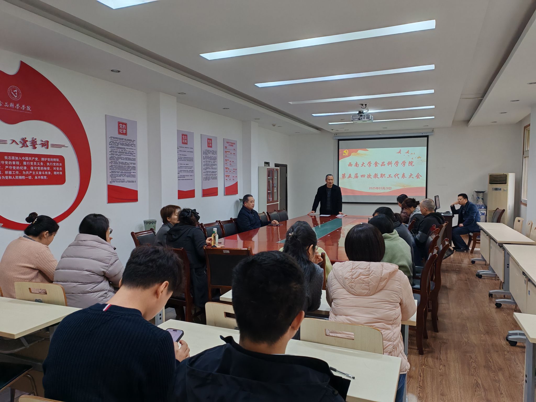 best365英国在线体育官网第五届四次教职工代表大会于2025年3月27日在40教学楼206会议室顺利召开,在校代表参加会议。本次会议的主要议题是讨论审议《“一院一策”职称评审基本学术条件》。