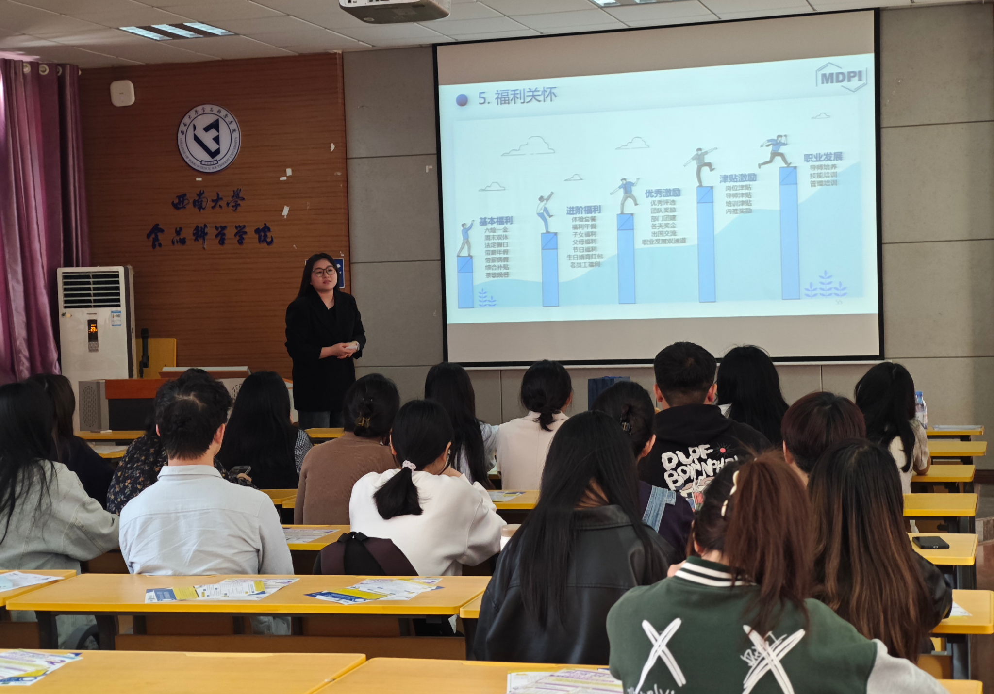 为提升毕业生就业竞争力,切实解决毕业生职业发展中的现实困惑,拓宽毕业生就业渠道实现更高质量更加充分的就业。4月9日14时,由西南大学best365英国在线体育官网主办,院研究生会承办的“职海扬帆·食途职引新航道”MDPI专场招聘宣讲会在39教312议室顺利举行。本次宣讲会邀请MPDI三位优秀编辑和HR担任嘉宾,研会指导教师、辅导员张欢参会,吸引超60名本科生和研究生前来参加。