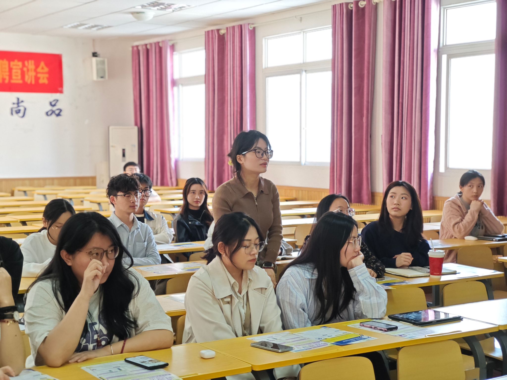 在互动提问环节中,同学们对求职岗位表现出极大热情,围绕岗位晋升路径、入职后的培训体系、工作与生活的平衡等诸多关键问题与嘉宾们进行了深入的交流。嘉宾们针对毕业生提出的问题逐一进行了专业而细致的解答,赢得了现场阵阵热烈的掌声。