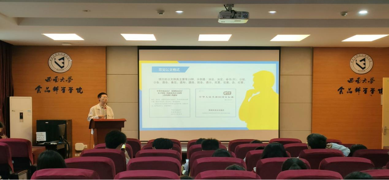 方令就“新闻的概念、基本特点、六要素、写作格式、照片”等方面进行阐述新闻稿的写作要领,他强调了新闻稿标题和主体用语标准度的重要性。此外,他还介绍了策划书、通知等公文格式。培训过程中,方令不仅对公文写作进行了耐心分析,还分享了许多案例和经验。使同学们对公文写作有了全新的认识和更深刻的了解。