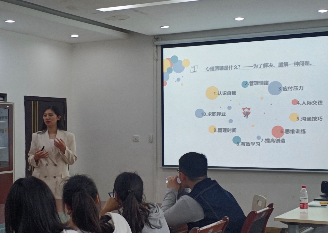 杨希重点强调了心理团辅的重要性,特别对于大学班集体而言,心理团辅是增强同学们对班级的归属感和认同感,提高班级凝集力的一个良好媒介;对于大学生个人而言,心理团辅则是开发大学生心理潜能、增进大学生心理健康、激发大学生自我教育、提高大学生共情能力的一种重要方式。