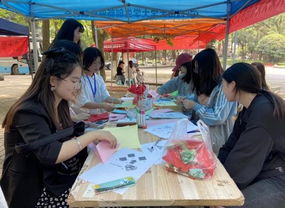 上午九点整,由火柴头失物招领中心的志愿者首先创作的手工作品吸引了大批过路学生的围观,随之也亲自动手学习手工制作,感受动手折纸、创意贴纸带来的乐趣。志愿者为现场的同学讲解了制作过程,并引导同学们要学会通过合理途经为自己减压赋能、调控情绪,善于发现身边的美好事物,可做一些自己感兴趣的事情疏导负面情绪。与此同时,失物招领活动也在同步进行,火柴头失物招领中心通过帮助同学们寻找遗失的物品、了解失物招领的流程和途径,发扬了志愿服务精神。
