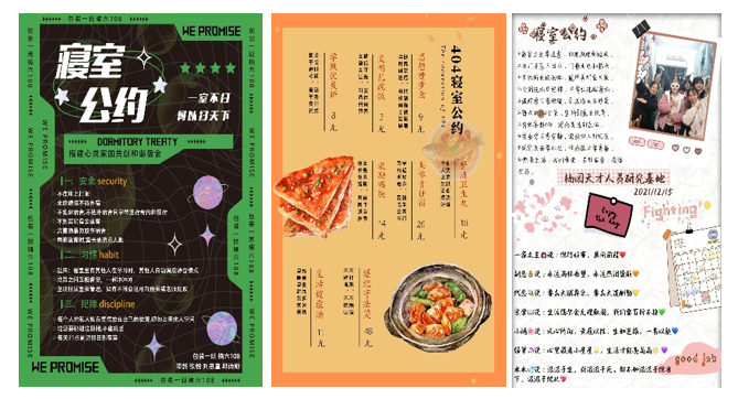 此次活动以设计大赛的形式开展,充分调动了同学们的积极性,引导同学们在公约设计过程中主动思考学生行为准则,对标《重庆市高校文明寝室创建标准》,主动参与寝室规则制定,进行寝室的建设管理,提升寝室形象,积极引导寝室成员为文明寝室创建贡献自身力量,对寝室团队的融合与发展具有十分积极的意义。同时,寝室公约设计大赛的成功开展是落实学院“三全育人”改革和园区育人工作的重要举措,提升了园区育人工作深度和质量。