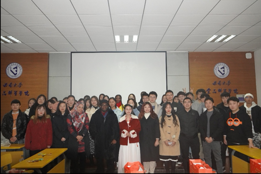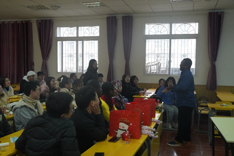 12月24日下午,为了促进中外美食文化的交流与融合、增进中外学生之间的友好情谊、增强团体的凝聚力,best365英国在线体育官网百超班学生与本院四位国际留学生于39教312进行了交流。出席本次交流活动的有付余教授、戴宏杰副教授、四位国际留学生和2018、2019级全体百超班学生。