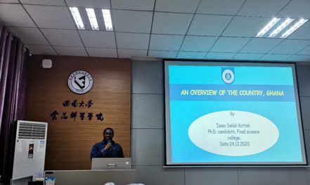 本次活动由茶艺社的两名社团成员的茶艺表演拉开帷幕。两位同学的精彩演绎使我们感受到了茶艺之优雅与中国茶文化之博大精深。之后,由Isaac、Heba和徐薇三名留学生分别为大家介绍和分享了自己的家乡的美食文化、标志性建筑和节日活动等。介绍之余,同学们积极举手与他们进行美食文化交流。他们生动有趣的语言与互动加深了大家对加纳、埃及、尼日利亚的风土人情与饮食习惯等的了解,使大家感受到了异国文化的多姿多彩。