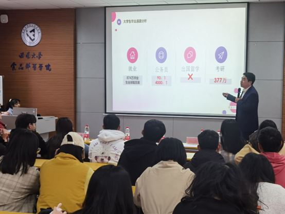 活动第二阶段由资深面试专家李学剑为同学们总结出一些考研准备过程中的误区与窍门。然后从大学生职业生涯规划、考研备考规划与面试技巧三个方面为同学们介绍了大学生毕业后面临的各个出路,使同学们做到了心中有数,不盲目考研。同时,李老师具体分析了各个时期可能会发生的情况,细致入微地解答了同学们的各种问题,为同学们的考研之路点亮了前行的火炬。