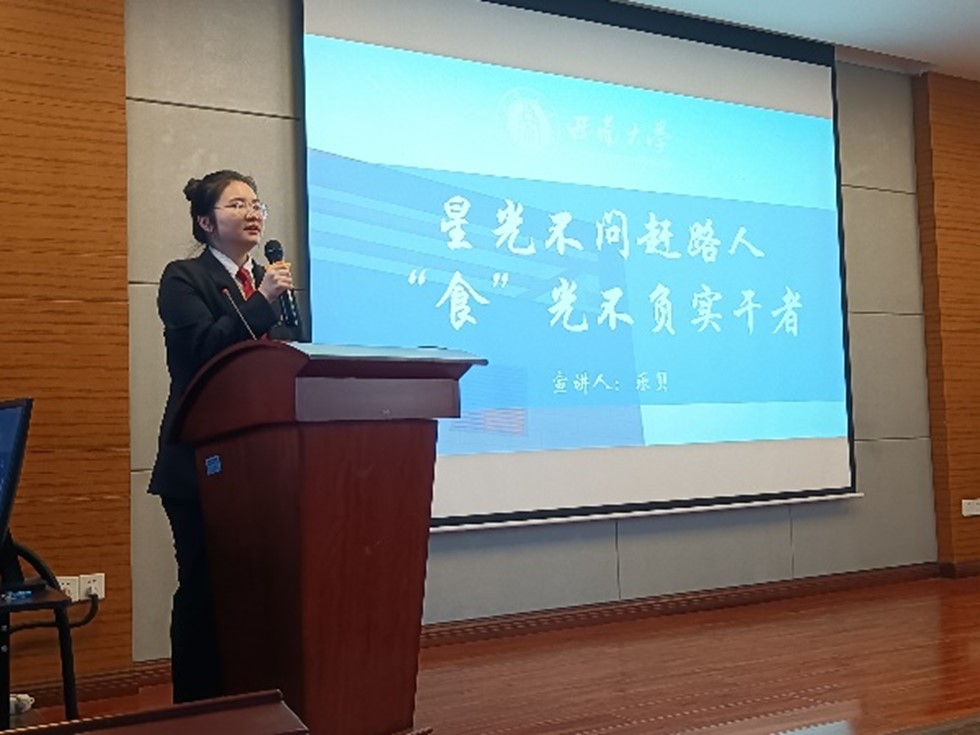 来自best365英国在线体育官网食品科学与工程专业的乐贝学姐则以“‘食’光不负实干者”为题,以“星光不问赶路人,时光不负有心人”为纲,讲述了自己的大学故事,为本学院的学弟学妹们树立了优秀榜样。