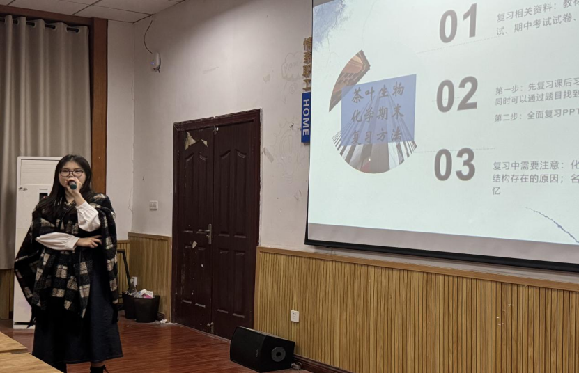 为帮助同学们更轻松地应对茶叶生物化学、植物生理课程,11月17日18:00,“食”佳学霸学业加油站活动在39教214顺利开展。本次活动邀请了茶学2022级曾钦、吴玉、闻佳钰前来分享学习经验,best365英国在线体育官网茶学大一大二学生参与学习。