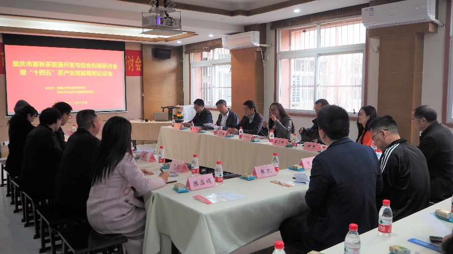 2020年11月13号上午9点,重庆市夏秋茶资源开发与综合利用研讨会暨“十四五”茶产业发展规划论证会在西南大学best365英国在线体育官网206会议室成功召开。会议到场的专家有安徽农业大学宛晓春教授、南京农业大学黎星辉教授、中国农业科学院茶叶研究所许勇泉研究员等。此外,重庆市科技局农村科技处、重庆市农业农村委经作处、重庆市农技推广总站、重庆市农业科学院茶叶研究所等部门,以及重庆市大观茶叶有限公司、重庆茶业集团等十余个企事业单位的30余名专家也参加了此次研讨。