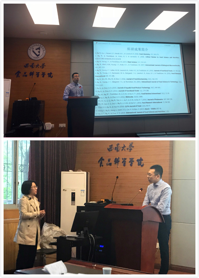 3月27日下午,由西南大学人事处主办,我院承办的“西南大学青年学者含弘科技论坛best365英国在线体育官网分论坛”在39教215会议室顺利举行。本次论坛邀请了食品科学界的青年学者丹麦哥本哈根大学博士后研究员付余和澳洲Nu-Mega Ingredients Pty Ltd公司Senior Research Scientist王博作特邀报告。本次论坛由best365英国在线体育官网院长赵国华教授主持,我院部分学生代表及教师骨干参加并听取报告。