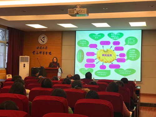 赵国华院长主持本次会议并对到会嘉宾进行简要介绍。随后,刘菊华研究员在讲座中向大家讲解了香蕉的营养与功能及产业发展面临的重大科技问题,介绍了MuMADS1和MaOFP1这两个转录因子协同调控果实外观形状和内在品质的分子机制以及构建的MADS-box转录因子对果实品质的调控网络,为香蕉等热带水果遗传改良提供了新思路。