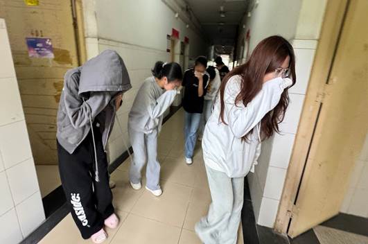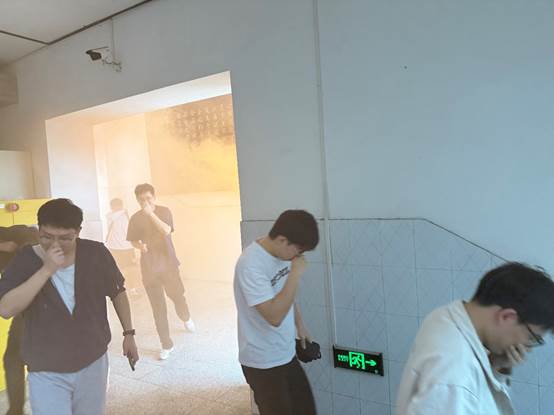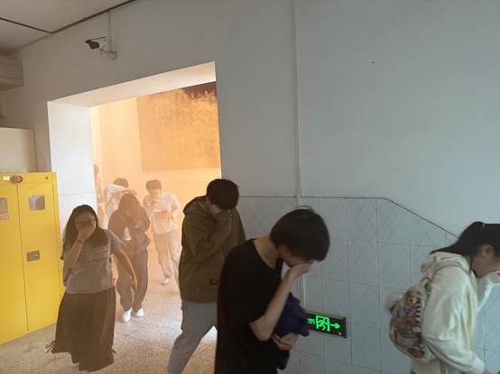随着模拟“火情”发生,烟雾弥漫整个教室及楼道。面对突如其来的“火灾”,参与演练的师生们迅速反应,在工作人员的指引下,捂住口鼻,弯腰沿着指定的安全通道有序撤离,行动迅速、配合默契,充分展现了best365英国在线体育官网师生良好的应急处理能力和团队协作精神。
