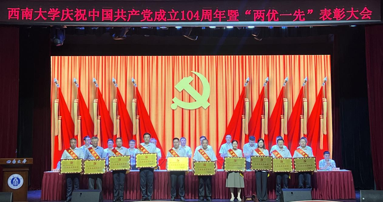 7月1日,西南大学庆祝中国共产党成立104周年暨“两优一先”表彰大会在光大礼堂隆重举行。